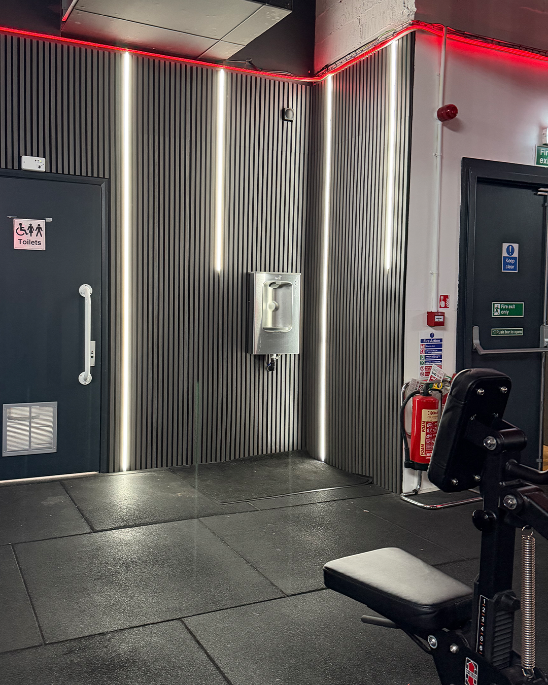 The completed project delivered a clean, modern electrical installation that improves reliability, safety and the overall appearance of the gym environment.